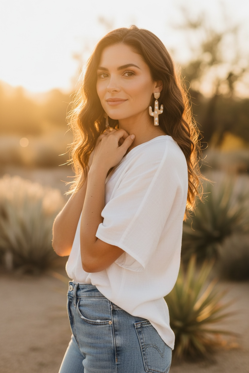 Tiny desert vibes for your ears! These handmade polymer clay cacti earrings bring a chic, botanical touch to any look. Perfect for plant lovers who want to wear their passion—literally. Each pair is crafted with care in a charming brown and white palette that pairs with everything. Lightweight, quirky, and totally Instagram-worthy. Because sometimes the best accessories are the ones that make you smile.