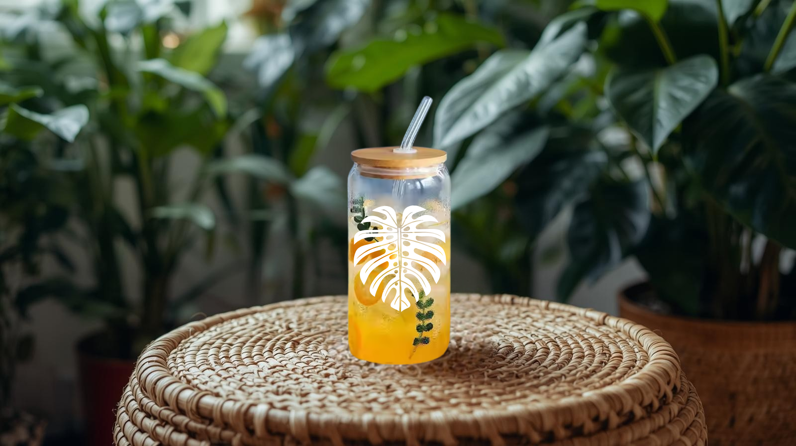 Sip your favorite drink with playful style using our Monstera Beercan On the Go Glasses. The signature Monstera design and eco-friendly materials, including a bamboo lid and glass straw, bring plant vibes to your on-the-go beverage game.