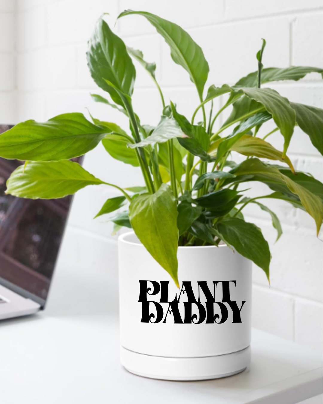 Calling all plant daddies .... this planter is just for you. Ceramic, drainage... comes with matching saucer! Everything you need!