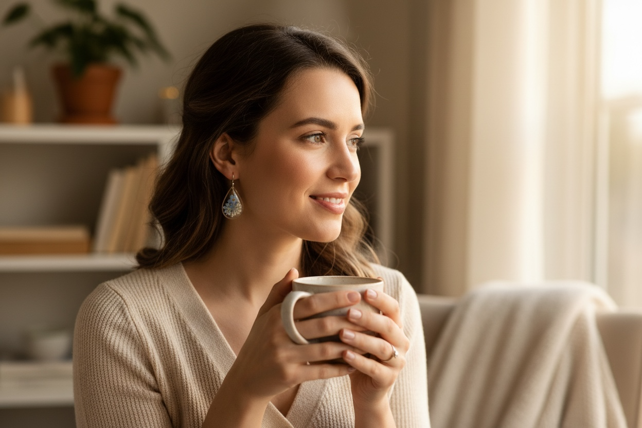 Capture the serene beauty of a garden in miniature with these enchanting blue pressed flower earrings. Each pair features real botanicals preserved in crystal-clear resin, offering a whisper-soft aesthetic that plant enthusiasts adore. The dainty design sits gracefully on the ear, bringing understated sophistication to any outfit. Whether you're channeling cottagecore vibes or simply celebrating your love of nature, these chic little treasures prove that the best accessories tell a story—one delicate petal at a time.