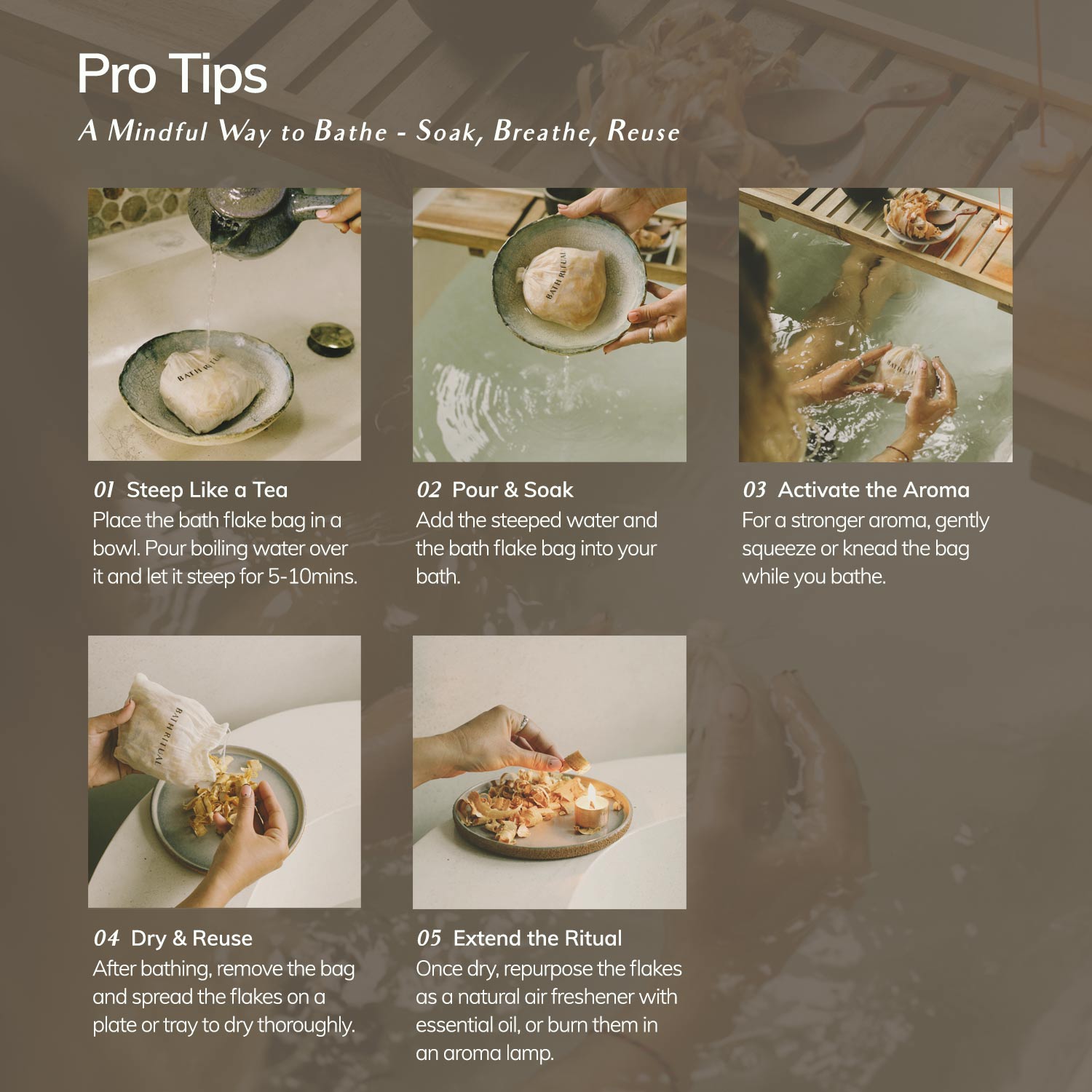 - When added to your bath, these flakes release a calming and soothing aroma, enhancing your Sacred bathing experience.